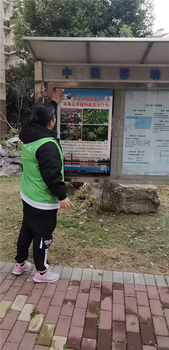 為維護社會安定和諧,提高廣大居民的幸福感、獲得感和安全感,南京市棲霞區(qū)馬群街道百水芊城社區(qū)通過“線上+線下”開展“禁種鏟毒”宣傳工作。