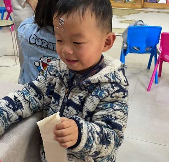 活動(dòng)中,中心老師引導(dǎo)家長、幼兒進(jìn)行了熱身活動(dòng)“魔袋尋寶”,組織大家通過“拉紅繩”的形式進(jìn)行分組,相互分工合作,很快就找到“寶藏”并順利完成任務(wù)。熱身游戲后的“手工剪紙做手工”環(huán)節(jié),志愿者為所有幼兒派發(fā)彩紙、剪刀、膠水等工具,并逐一示范每個(gè)操作步驟,“上下對折、左右對折、沿著虛線折......”幼兒們聽得格外認(rèn)真,個(gè)個(gè)都是躍躍欲試、大顯身手的模樣,迫不及待地?cái)[弄起手中的彩紙。在志愿者和家長的幫助下,幼兒們順利完成了自己的作品,自豪地向小伙伴炫耀起來。活動(dòng)的最后,家長們跟著老師的指令帶著孩子們做起身體運(yùn)動(dòng),隨著歡樂的音樂,拍拍手、跺跺腳,轉(zhuǎn)圈圈…孩子們都開心極了,臉上洋溢著快樂的笑容。