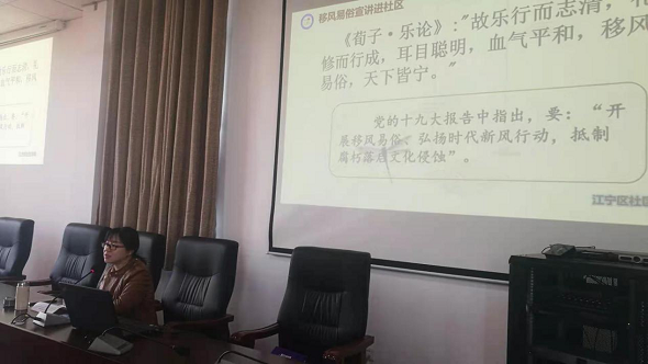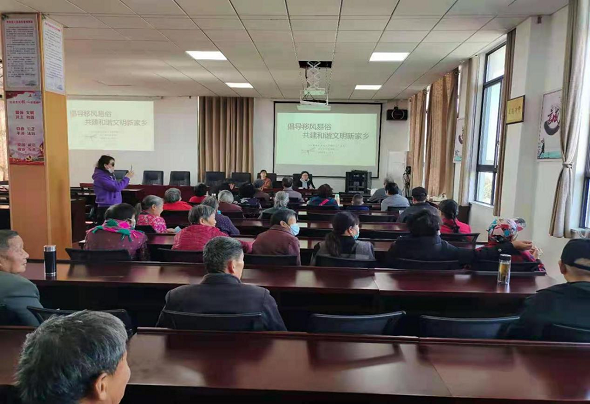 講座中,宣講員首先從“當(dāng)前城鄉(xiāng)陳規(guī)陋習(xí)的主要表現(xiàn)”“為什么要推動城鄉(xiāng)移風(fēng)易俗”講述了紅白喜事大操大辦等不良陋習(xí)的由來,并結(jié)合婚事新辦、喪事簡辦的先進(jìn)典型宣講如何有力推進(jìn)移風(fēng)易俗工作。隨后從新時代新思想的角度出發(fā),提倡破舊立新、婚事新辦、摒棄陋習(xí)、喪事簡辦、崇尚節(jié)儉、喜事簡辦、弘揚孝道,厚養(yǎng)薄葬。倡導(dǎo)大家破除封建迷信、改變大操大辦不良社會習(xí)俗,建立科學(xué)文明的生活方式,樹立健康和諧的良好風(fēng)尚。最后她強調(diào),黨員干部要帶頭倡導(dǎo)移風(fēng)易俗樹新風(fēng),要以政風(fēng)黨風(fēng)帶動社風(fēng)民風(fēng),以社區(qū)民風(fēng)涵養(yǎng)政風(fēng)黨風(fēng)?,F(xiàn)場參會村民紛紛表示推動移風(fēng)易俗,樹立文明新風(fēng)是每一位公民責(zé)無旁貸的義務(wù),將自覺踐行移風(fēng)易俗,爭做文明新風(fēng)的倡導(dǎo)者、傳播者和實踐者。