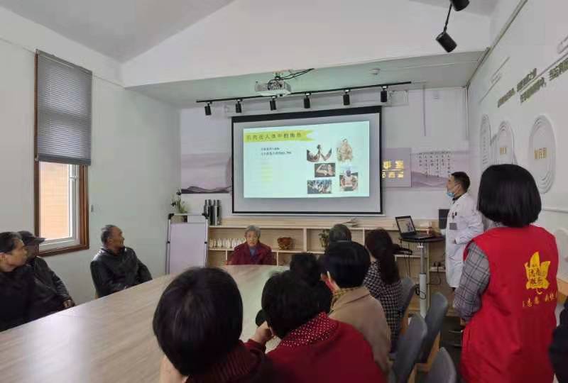 義診活動開始前,老年醫(yī)學科王權醫(yī)生首先給村民們舉辦了一場關于“肌少癥防治”的科普講座,為村民們講解了什么是“肌少癥”、肌少癥的表現(xiàn)和危害及防治策略等專業(yè)知識。特別是從營養(yǎng)學的角度,向村民們普及如何通過飲食調整增加營養(yǎng),以達到預防和治療肌少癥的目的,提高老年人的健康防病意識。