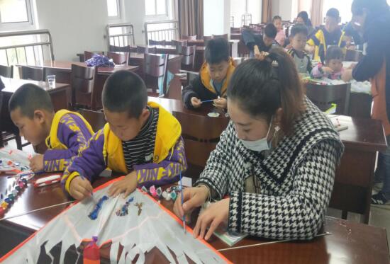 年齡小的小朋友在家長的協(xié)助下順利制作著心愛的風箏,多么溫馨和諧的畫面啊!