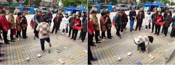 賽場(chǎng)上老人們興致高昂、各顯身手,現(xiàn)場(chǎng)氣氛熱鬧非凡?;顒?dòng)開(kāi)始前,社工帶著老人們做起熱身運(yùn)動(dòng),大家一起伴隨著音樂(lè)活動(dòng)著筋骨。趣味運(yùn)動(dòng)環(huán)節(jié),根據(jù)老年人的年齡和身體狀況,設(shè)置了投壺和套圈兩個(gè)項(xiàng)目。投壺比賽中,老人們躍躍欲試,現(xiàn)場(chǎng)也隨著命中情況,感慨著、歡呼著、惋惜著……另一邊的套圈場(chǎng)地,“老小孩”們個(gè)個(gè)身手矯健,有順序的排著隊(duì),互相攙扶,互相加油,到處洋溢著談笑聲、歡呼聲和此起彼伏的加油聲,氣氛熱烈而融洽。