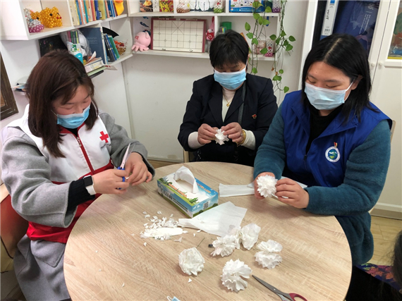 一大早,網(wǎng)格員、志愿者就在辦公室手工制作小白花,以祭英魂。9點(diǎn)整,網(wǎng)格員和交通幼兒園大班全體師生出發(fā)前往竹山林園,網(wǎng)格員為了保障孩童安全,自發(fā)組成人墻,在斑馬線上為孩子們保駕護(hù)航。