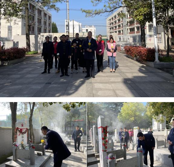 一部可歌可泣的黨史,以犧牲與奉獻書寫;一面面高高飄揚的黨旗,由無數(shù)英烈的鮮血染紅。他們是視死如歸的革命烈士,是頑強奮斗的英雄人物,是忘我奉獻的先進模范……現(xiàn)場,耀華社區(qū)代表靜靜佇立在“革命烈士永垂不巧”碑文前,聆聽高巧生同志講述張耀華烈士的一生:張耀華作戰(zhàn)勇敢,有勇有謀,他領(lǐng)導赤山區(qū)大隊民兵,配合新四軍和縣武裝力量,割敵人電線,破壞公路橋梁,搞情報,抓漢奸,還多次組織突襲,狠狠打擊敵人。他以磐石般的理想信念、百折不撓的英雄氣概、敢于勝利的頑強意志,寫下氣壯山河的偉大史詩。隨后,社區(qū)黨總支書記趙友勇為烈士敬獻花圈,全體默哀,緩步走向張耀華烈士墓碑前,以鮮花寄托哀思,表達崇高敬意和深切緬懷。