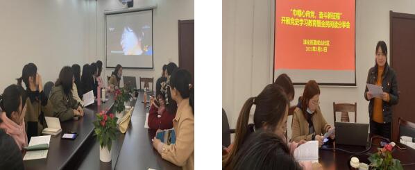 4月6日,南京市江寧區(qū)淳化街道成山社區(qū)婦聯(lián)和計(jì)生協(xié)組織社區(qū)兩委女干部和女網(wǎng)格員以“巾幗心向黨,奮斗新征程”為主題,開(kāi)展黨史學(xué)習(xí)教育,舉辦全民閱讀分享會(huì)。