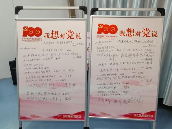 活動(dòng)現(xiàn)場,四個(gè)黨小組分別進(jìn)行詩歌朗誦,聲音鏗鏘有力,氣勢恢宏。黨員們用自己的真實(shí)情感表達(dá)了對(duì)黨、對(duì)祖國的熱愛、贊美與祝福,傳遞了慶祝建黨100周年,永遠(yuǎn)跟黨走的真摯情誼和豪邁宣言。隨后,黨員們一一上臺(tái),現(xiàn)場書寫想對(duì)黨說的話,一句句發(fā)自肺腑的感言和祝福閃爍著智慧的光芒,流露出廣大黨員對(duì)黨的忠誠和信任,深情抒發(fā)了對(duì)黨的熱愛敬仰之情。
