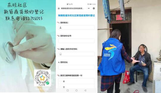 二是東旺社區(qū)率先采用微信小程序“問卷星”,發(fā)布于各微信群等網(wǎng)絡(luò)平臺,更方便快捷及時有效的通知居民疫苗預(yù)約,讓居民可以掃碼登記。網(wǎng)絡(luò)平臺發(fā)布接種點政策安排和預(yù)約登記方式等重要信息,全面推行疫苗接種承諾公示制度,不斷擴大宣傳覆蓋面,提升居民知曉率,全力以赴確保轄區(qū)人員應(yīng)接盡接。