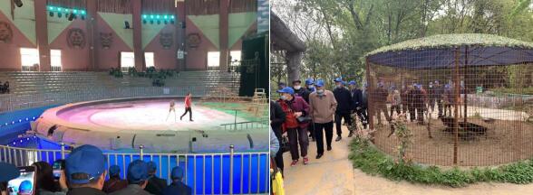珍珠泉位于南京北部,是以自然景觀為主體,融旅游觀光、休閑娛樂(lè)、度假療養(yǎng)為一體的好去處?;顒?dòng)當(dāng)天,一行人前往南京珍珠泉。剛剛落地就被景區(qū)如詩(shī)如畫(huà)的風(fēng)景所吸引,蜿蜒曲折的羊腸小道,波光粼粼的湖面,連綿起伏的山脈,共同繪就了一幅“山水相依生態(tài)美麗”的水墨畫(huà)卷。隨后,一行人來(lái)到珍珠泉?jiǎng)游飯@看動(dòng)物,老虎、獅子、鴕鳥(niǎo)、黑熊......各種各樣的動(dòng)物讓老人們看的眼花繚亂。緊隨其后的動(dòng)物表演,更是贏得了老人的一致認(rèn)可??粗实膭?dòng)物表演,現(xiàn)場(chǎng)歡呼聲、叫好聲連綿不絕。