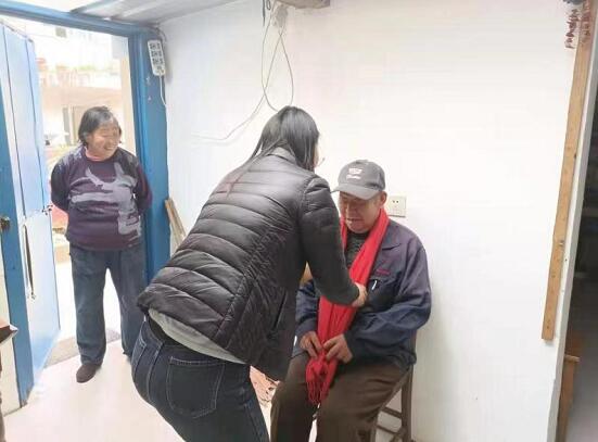 屋內(nèi)暖意融融,熱鬧場(chǎng)面里洋溢著幸福的味道。工作人員和志愿者們先依照慣例幫助王榮國(guó)打掃衛(wèi)生,掃地、拖地、擦桌子,大家忙得不亦樂(lè)乎。一會(huì)兒功夫,老人家中被志愿者們打掃得干干凈凈。“祝您生日快樂(lè),祝您健康長(zhǎng)壽……”打掃衛(wèi)生后,伴隨著溫馨的生日歌,志愿者們?yōu)槔先藥霞t圍巾,奉上生日禮物的同時(shí)為老人用相機(jī)記錄下這美好的瞬間。