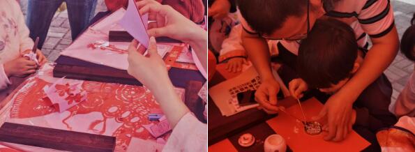 非物質(zhì)文化遺產(chǎn)的教育傳承,不僅是一種民族古老生命記憶的延續(xù),同時,也是一個對民族生存精神和生存智慧及生活態(tài)文化存在的認(rèn)知過程。非遺嘉年華致力傳統(tǒng)文化傳承,把代表著我們中華傳統(tǒng)文化的打香纂、茶藝、漢服、古風(fēng)團(tuán)扇、剪紙、雕版印刷等活動帶到居民身邊?;顒又?,孩子們每體驗一個項目,就可以獲得一個代表完成體驗的印章。集夠5個印章就可以前往兌獎處領(lǐng)取一個京劇變臉娃娃。