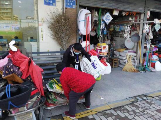 整治行動(dòng)中,社區(qū)工作人員、城市治理志愿者向商鋪店主耐心講解“門(mén)前三包”責(zé)任制的有關(guān)內(nèi)容,積極宣傳城市管理規(guī)定;同時(shí)以落實(shí)“門(mén)前三包”為重點(diǎn),以步巡和車巡的方式相結(jié)合,不間斷對(duì)轄區(qū)沿街商鋪“門(mén)前三包”落實(shí)情況進(jìn)行巡查,做到發(fā)現(xiàn)一處,清理一處。在整治行動(dòng)中,金堯花園社區(qū)重點(diǎn)對(duì)轄區(qū)主次干道沿線商鋪所存在的出店經(jīng)營(yíng)、亂設(shè)置廣告、亂堆亂放等現(xiàn)象進(jìn)行整治,街道公眾委員劉石城配合社區(qū)工作人員、城市治理志愿者對(duì)店外經(jīng)營(yíng)、亂堆亂放、衛(wèi)生情況差等現(xiàn)象進(jìn)行治理,并現(xiàn)場(chǎng)督促商戶整改。