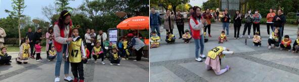 活動(dòng)在廣場(chǎng)上進(jìn)行,共有三十余組家庭到場(chǎng)參與。活動(dòng)在親子游戲的歡樂氛圍中拉開序幕,擊鼓傳花、反應(yīng)力游戲,讓孩子們帶著興奮勁進(jìn)入到了熒光夜游的重點(diǎn)環(huán)節(jié)。志愿者們把熒光發(fā)飾分發(fā)給孩子們,并幫助孩子們戴到頭上和手臂上。孩子們看著彼此頭上閃閃發(fā)亮的發(fā)飾都感到很新奇,對(duì)接下來(lái)的活動(dòng)也充滿了好奇?;顒?dòng)在工作人員的指令下正式開始,《閃閃的紅星》的音樂響起。孩子們跟著工作人員的舞步盡情舞動(dòng),稚嫩的聲音唱起紅歌,紅歌是中華民族寶貴的精神財(cái)富,紅歌精神催人奮進(jìn),激勵(lì)斗志。有的小朋友還在工作人員的鼓勵(lì)下上臺(tái)展示才藝,獨(dú)唱《魯冰花》、《外婆的澎湖灣》、《讓我們蕩起雙漿》等歌曲;還有的小朋友一展優(yōu)美的舞姿,引得在場(chǎng)的家長(zhǎng)、孩子和來(lái)往的路人不禁鼓掌喝彩。