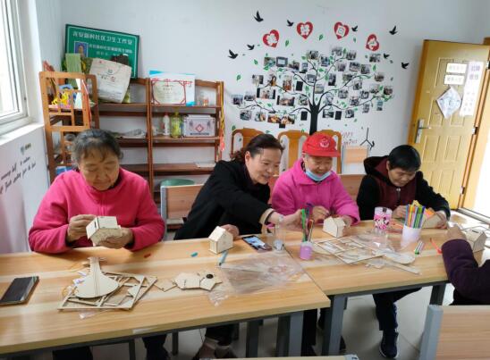 社區(qū)的趙阿姨是居家養(yǎng)服務(wù)站的???,平時沒事兒就會來這里和其他居民聊天喝茶,他告訴社區(qū)工作人員自己年輕時就是靠著幫別人補衣服、補鞋子生活的,做手工當(dāng)然不在話下?;顒娱_始后幾位阿姨就動起手來,從阿姨的眼神中能看出他們的認(rèn)真和仔細(xì),雖然這次活動的材料是木制品,與阿姨們熟練掌握的針線活有所不同,但是大家還是很認(rèn)真地在動手,用一雙雙巧手搭起房子、做出樂器。經(jīng)過一下午的努力,阿姨們把小木屋做的美麗又精致,使簡單的木頭仿佛擁有了生命,變得色彩斑斕,此時的阿姨們也開心的像是孩童一般。