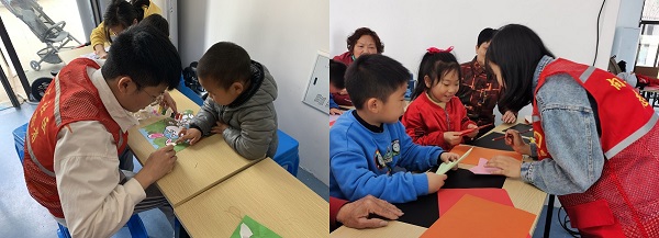 活動中,志愿者們拿出事先準備好的材料,在向小朋友們介紹了剪紙和沙畫的方法技巧、制作過程中需要注意的問題后,小朋友們各自挑選了自己喜歡的花樣便開始制作了。志愿者們在一旁認真地指導剪紙和沙畫的技巧,并給大家演示動作。不一會兒,一件件精彩有創(chuàng)意的手工作品陸續(xù)完成,孩子們從制作過程中收獲了快樂,也激發(fā)了想象力、創(chuàng)造力。