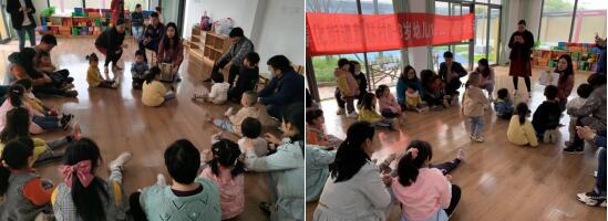 0-3歲是孩子成長(zhǎng)的黃金階段,作為一個(gè)社會(huì)人的所有基礎(chǔ)的奠定,在嬰幼兒時(shí)期的效率是最高的?;顒?dòng)伊始,老師親切地問孩子們的名字,在粘貼紙上寫上孩子的名字,在接下來的課堂上用《Hello之歌》先讓每個(gè)孩子被大家認(rèn)識(shí),讓孩子們覺得自己是被重視的,有利于孩子們?cè)谡n上專注。隨后,老師與大家進(jìn)行繪本閱讀,老師通過講故事的方式讓孩子們有興趣,吸引孩子們到身邊一起參與閱讀,鍛煉孩子的膽量,訓(xùn)練孩子的語(yǔ)言能力。閱讀過程中,老師傳授給家長(zhǎng)教育技巧。老師告訴他們要讓孩子看到同伴的行為,讓他們互相影響,互相學(xué)習(xí),就會(huì)潛移默化的影響行為,鍛煉自主能力。