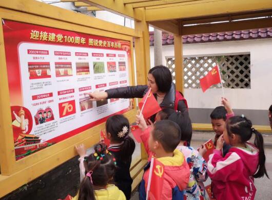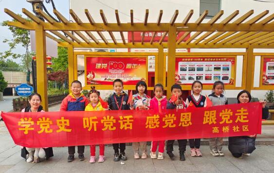 為發(fā)揚優(yōu)良的革命理念,牢記立德樹人初心、堅定愛黨、愛國理想信念,南京市江寧區(qū)東山街道高橋社區(qū)開展“高橋娃娃學黨史”學習教育,志愿者帶領孩子們來到前潘村學習長廊學習百年歷史。