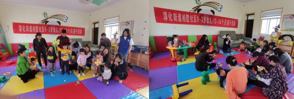 活動開始,社區(qū)志愿者通過帶孩子們跳舞等環(huán)節(jié)讓孩子們熟悉新的環(huán)境,平復緊張的情緒。隨后,志愿者根據根據孩子的年齡特點精心設計了不同的集體親子活動內容,有手工繪畫制作、律動、鉆山洞等。孩子們在愉快的游戲中促進其動作技能、語言、行為習慣、社交等方面的發(fā)展,志愿者在活動中對家長進行指導,教他們在家里如何完成這些親子活動,為家長解答育兒困惑,家長們感到受益匪淺。