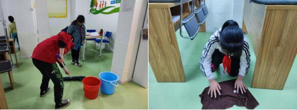 隨后,新時(shí)代文明實(shí)踐志愿者組織青少年們共同清掃教室,青少年們分工合作,有的拿著掃把用力掃地,有的拿著灑水桶給地面澆水,有的則負(fù)責(zé)將教室內(nèi)的垃圾倒掉,雖然他們的小臉蛋因?yàn)楦苫罴t撲撲的,額頭上也綴著汗水,但是他們打掃的熱情絲毫沒有被減弱,在小朋友的共同努力下,教室被打掃得干干凈凈、一塵不染。