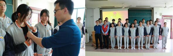 “我們是五月的花海,用青春擁抱時代。我們是初升的太陽,用生命點(diǎn)燃未來。“五四”的火炬,喚起了民族的覺醒......”團(tuán)員青年們用激情澎湃、朝氣蓬勃的團(tuán)歌拉開了活動的帷幕。趙主任宣讀新團(tuán)員名單,朱書記和李書記為新團(tuán)員佩帶團(tuán)徽,希望團(tuán)員青年在莊嚴(yán)肅穆的儀式中接收到“沉浸式”精神洗禮,向團(tuán)徽蘊(yùn)含的象征物一樣,展現(xiàn)出朝氣蓬勃、奮發(fā)進(jìn)取的精神風(fēng)貌,為團(tuán)組織注入新的活力。