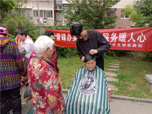 活動中,社區(qū)“常春藤”居家養(yǎng)老服務(wù)站準(zhǔn)備了趣味套圈活動,吸引了眾多社區(qū)居民的積極參與,既鍛煉了他們的判斷力和手眼協(xié)調(diào)能力,也為他們送上實惠好禮;沿街商鋪“古子”理發(fā)師手法嫻熟地為每位前來剪發(fā)的居民們理出清爽發(fā)型;社區(qū)共建單位中國郵政儲蓄銀行百水芊城支行工作人員耐心為居民宣講了反電信詐騙、第三代社保卡辦理等知識;社區(qū)垃圾分類指導(dǎo)員與居民分享了垃圾分類常識,幫居民巧記分類口訣,正確分類投放生活垃圾。此外,現(xiàn)場還設(shè)置了鏘剪磨刀區(qū),為居民解決生活小難題。