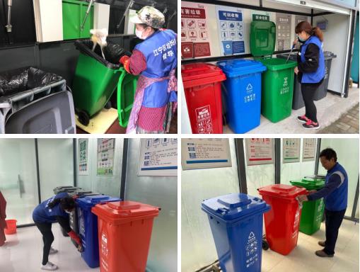 這個“藍馬甲”群體便是垃圾分類督導員,他們除了每天特定時間段守在垃圾箱房旁之外,還會利用空檔時間對四分類垃圾桶進行消殺清洗,并對混投現(xiàn)象及時進行二次分揀,確保分類投放準確率,時刻為居民提供干凈整潔的箱房環(huán)境。