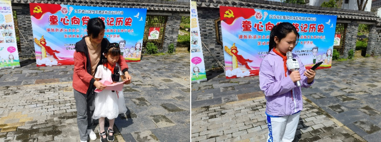 活動現(xiàn)場,孩子們和家長在工作人員的引導(dǎo)下,以孩子們喜歡的故事為出發(fā)點,三組家庭上前共讀紅色經(jīng)典故事。在場的家長和孩子們共同讀黨史、感黨恩,在閱讀中回顧黨的光輝歷程,感受共產(chǎn)黨人心中所傳遞的永不磨滅的光芒。接下來,在工作人員的鼓勵下,孩子們自由上前進行詩歌朗誦,從紅色經(jīng)典中汲取精神營養(yǎng),厚植家國情懷。
