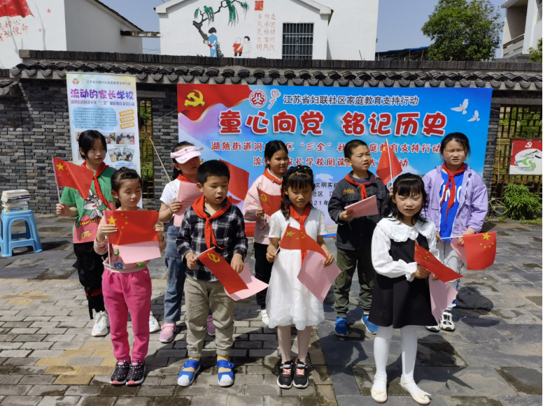 在建黨100周年之際,為了讓社區(qū)居民懂得學(xué)史明理、學(xué)史增信、學(xué)史崇德、學(xué)史力行的道理,讓社區(qū)兒童帶動家庭學(xué)習(xí)黨史,閱讀革命英雄故事,營造社區(qū)全民閱讀的氛圍。江寧區(qū)湖熟街道新時代文明實踐所、湖熟街道婦聯(lián)聯(lián)合河北社區(qū)婦聯(lián)在蔡家邊廣場開展了主題為“童心向黨,銘記歷史”——河北社區(qū)家庭教育支持行動之流動的家長學(xué)校閱讀推廣大型活動。