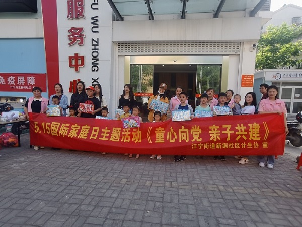 今年是建黨百年的喜慶之年,為了提升社區(qū)家庭成員學(xué)黨史、悟思想的理念,2021年5月9日下午,南京市江寧區(qū)江寧街道計生協(xié)聯(lián)合新銅社區(qū)計生協(xié)在新銅社區(qū)黨群服務(wù)中心開展了主題為“童心向黨,親子共建”義賣公益活動,恰逢又是母親節(jié),從活動中激發(fā)孩子們感激媽媽的養(yǎng)育之恩及對媽媽濃濃的愛意,活動召集了社區(qū)10組親子組家庭參加。