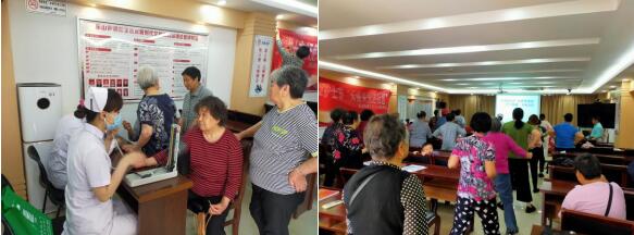 現(xiàn)場(chǎng),醫(yī)護(hù)人員們用淺顯易懂的語言向轄區(qū)老年人詳細(xì)講解慢性病的概念、分類、誘發(fā)因素等健康教育知識(shí)和預(yù)防措施,并開展健康檢查、教學(xué)老年運(yùn)動(dòng)操,老人們積極參與,在醫(yī)護(hù)人員的指導(dǎo)下,有序排起長隊(duì),認(rèn)真學(xué)習(xí)老年運(yùn)動(dòng)操的步驟。“我要記牢動(dòng)作,回家以后也每天就做,做到身強(qiáng)體壯吃嘛嘛香。”在老年運(yùn)動(dòng)操學(xué)習(xí)現(xiàn)場(chǎng),一位老人興高采烈地說道。