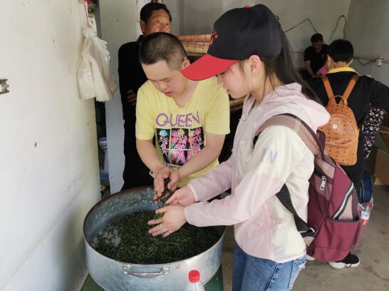 一大早,東山街道上坊社區(qū)聚心殘疾人之家的14名殘友就早早地到達(dá)江寧區(qū)民政局集合上車,在車上負(fù)責(zé)人跟大家講解采茶的注意事項(xiàng),做了互動(dòng)游戲,很快就到達(dá)了黃龍硯茶園。到達(dá)目的地后,看到漫山遍野的茶樹(shù),他們迫不及待開(kāi)始采茶。在采茶的過(guò)程中,志愿者細(xì)心指導(dǎo)殘友們?nèi)绾尾刹?,并在采茶過(guò)程中鼓勵(lì)他們“你采的很快啊”、“加油,你就要趕上他們了”、“哇,你采的茶葉很好啊,感覺(jué)很有經(jīng)驗(yàn)”。很快,大家就采了很多的茶葉。隨后大家體驗(yàn)了炒茶的全過(guò)程:殺青、揉茶、二次殺青、烘干、包裝??吹阶约旱?ldquo;勞動(dòng)成果”在自己靈巧的雙手下慢慢變了樣,大家心里充滿了喜悅。