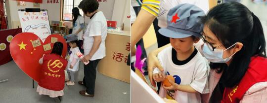 “萌萌噠劇場”兒童小劇場環(huán)節(jié),圍繞“雞毛信”故事展開。志愿者家長們給小朋友們邊演邊講,將“雞毛信”這個紅色故事用簡潔明了的方式表演出來,生動的表演讓觀看節(jié)目的家長和孩子們都更加了解了雞毛信的故事,在故事的余溫中,各組親子家庭以家庭為單位開始了“萌萌送信使者”環(huán)節(jié),家長和孩子一同制作雞毛信并且完成送信的小游戲,成功送達的家庭獲得一枚小紅旗,而小朋友們則獲得了專屬的英雄標(biāo)志——紅軍帽子。拿到紅軍帽子的小朋友蹦蹦跳跳的戴好,家長們在一旁拍照片,小孩子也在懵懂中領(lǐng)悟了紅軍帽子的光榮感。