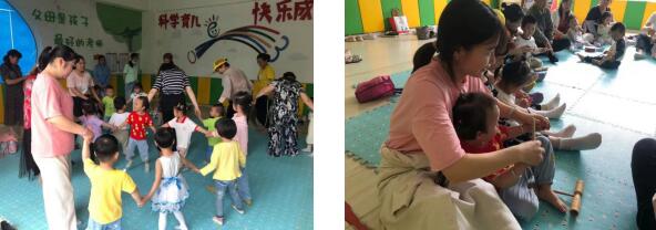 活動(dòng)中還安排了早操、自我介紹、音樂課、互動(dòng)游戲等環(huán)節(jié),嬰幼兒們聽隨笑笑老師的指令,認(rèn)真完成拍小鼓,敲擊雙響筒等有利于激發(fā)孩子們音樂細(xì)胞的小游戲,孩子們爭(zhēng)取贏得表示夸贊的小紅花。短短一小時(shí)的親子活動(dòng)轉(zhuǎn)瞬即逝,在家長(zhǎng)的陪同下,嬰幼兒們玩得不亦樂乎,現(xiàn)場(chǎng)其樂融融,十分幸福和諧。