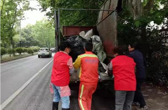 堯化社區(qū)城管聯(lián)合志愿者清理小區(qū)亂堆垃圾
