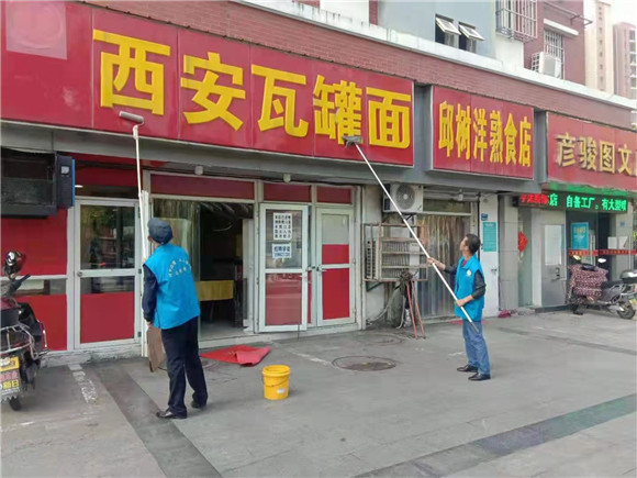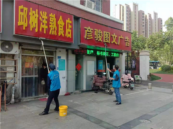 清洗門(mén)頭牌匾 扮靚美麗街區(qū)