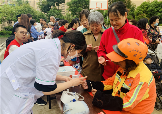 5月20日,南京市棲霞區(qū)馬群街道蛇盤社區(qū)新時代文明實踐站在玫瑰園籃球場組織開展“志愿服務 美好同行”便民廣場活動,提供血壓計檢定、眼鏡清洗、測量血壓血糖等免費服務,讓居民們在自家門口享受貼心服務。