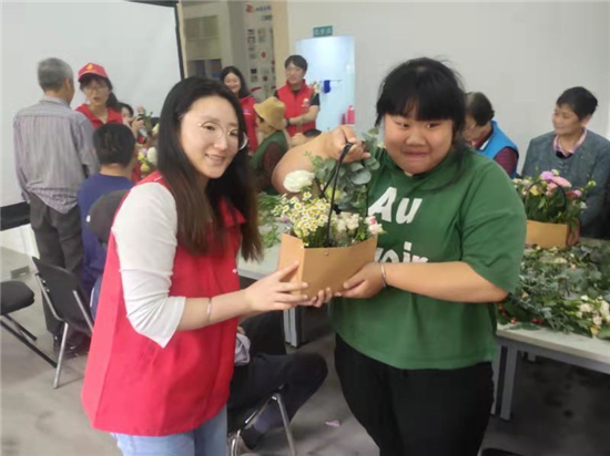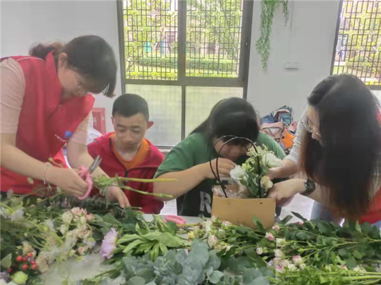 5月21日下午,由中建三局南京分公司、南京市棲霞區(qū)棲霞街道石埠橋村社區(qū)殘疾人之家、東南大學(xué)愛(ài)心社共同開(kāi)展的“志愿共助殘 花藝暖人心”活動(dòng)在石埠橋村社區(qū)殘疾人之家開(kāi)展,二十余名殘疾人及志愿者參與此次活動(dòng)。