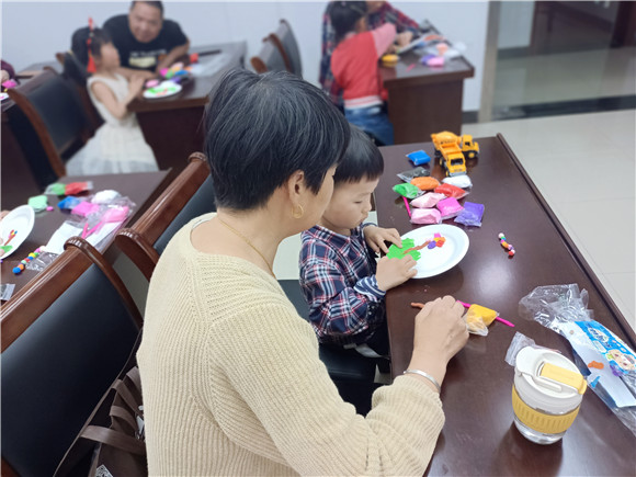 課上,社區(qū)志愿者老師首先通過提問互動的形式,了解了大家對綠色和環(huán)境保護(hù)的理解,并舉例讓大家對居民的一些生活行為進(jìn)行了評斷,呼吁大家文明生活,自覺愛護(hù)身邊環(huán)境。隨后,跟隨志愿者老師的講解和示范,家長和孩子們齊動手,揉、捏、粘、貼……合力完成紙盤彩泥作品,少兒們一一上臺介紹了自己的作品。綠綠的草地、五彩的花朵、悠閑的毛毛蟲、可愛的蘑菇等讓大家體會了自然和諧的美麗和環(huán)保的重要性。