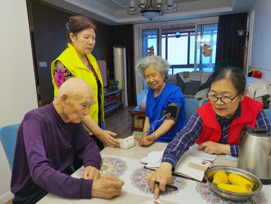 時間銀行志愿兩兩一組入戶為轄區(qū)高齡、空巢、獨(dú)居老人測血糖、量血壓、便民理發(fā)、安全檢查及安全用藥知識普及。因天氣變化多端,擔(dān)心老人的身體健康,時間銀行志愿者朱阿姨和她的小伙伴一大早就帶著血壓計(jì)上門探望高齡老人,為老人測量血壓,血壓異常的老人給予合理的建議。