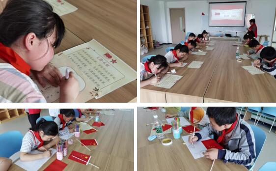 隨后在社工的帶領(lǐng)下,小朋友們共同誦讀毛澤東同志的《七律·長(zhǎng)征》,童聲陣陣,致敬紅軍先輩。小朋友們以《七律·長(zhǎng)征》為內(nèi)容,認(rèn)真手書硬筆書法,并以“慶祝中國(guó)共產(chǎn)黨成立100周年”為主題創(chuàng)作書畫。