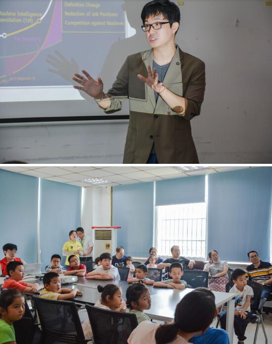 上午9點(diǎn),社區(qū)的家長(zhǎng)帶著自己的孩子們陸續(xù)來(lái)到這里,隨著整個(gè)會(huì)場(chǎng)座無(wú)虛席,本次活動(dòng)正式開(kāi)始。來(lái)自南京航空航天大學(xué)藝術(shù)學(xué)院的千炫珍教授為大家?guī)?lái)的“新時(shí)代思維教育的重要性”的科普講座。在講座中,千教授從第四次工業(yè)革命的角度談起,表達(dá)了設(shè)計(jì)思維的重要性,并通過(guò)在工業(yè)、商業(yè)、紡織業(yè)、農(nóng)業(yè)等不同行業(yè)的不同例子的展示,生動(dòng)的展現(xiàn)了在技術(shù)發(fā)達(dá)的當(dāng)下,轉(zhuǎn)變并擁有設(shè)計(jì)思維的重要意義。同時(shí),千教授還通過(guò)圖像演示等方式,向大家展示了3D打印、機(jī)器人等新技術(shù)的工作原理,激起了孩子們的興趣,也吸引了現(xiàn)場(chǎng)家長(zhǎng)的注意力。