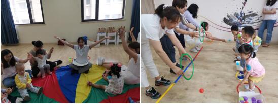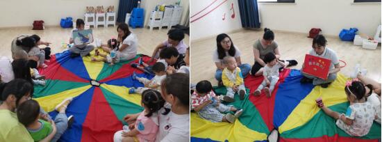 隨后,老師們帶領小朋友們做律動操《小動物做早操》,憨態(tài)可掬的動作,瞬間萌翻了一眾家長的心,讓陪同的家長們?nèi)炭〔唤?。待小朋友們熟悉環(huán)境后,老師又帶領家長和小朋友們一起參與進來,從做游戲《小雞捉蟲》、《聽聲辨位》、《親子投球》,到學兒歌《夏天》,精彩的互動,讓孩子們樂在其中。尤其是繪本故事《長大長大,老師一邊讀故事一邊生動的表演著一邊和孩子們互動,引起家長朋友的一致好評,紛紛表示要向老師學習如何將繪本故事講得如此生動。