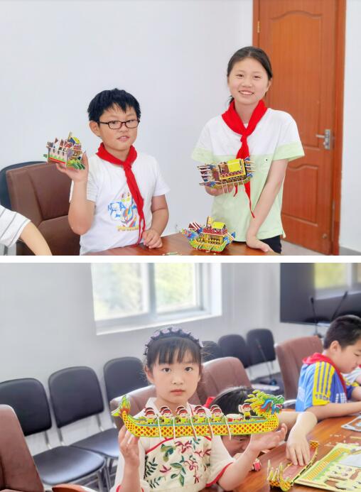 志愿者老師還通過(guò)講述端午節(jié)龍舟習(xí)俗,并與孩子們一起制作各種龍舟。