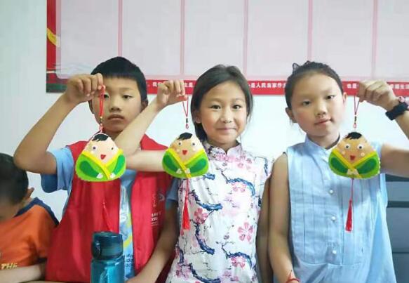 接著,老師帶領孩子們共同制作手工粽子香囊。在活動中老師還問了外來務工子女們,他們今年端午節(jié)預備怎么度過。有的孩子說我爸爸媽媽要上班,端午一個人度過;有的說我們一家要去爺爺奶奶那度過,有的則說家里從來不過端午節(jié)。聽到孩子們的訴說后,老師表示不要灰心,不管往年的端午節(jié)是怎樣度過的,今年端午老師們將和孩子們一起度過。隨后,老師還為孩子們送上提前準備的鴨蛋網(wǎng)和五彩手鏈,接過禮物的孩子們開心不已,在濃濃的節(jié)日氣氛里學習了制作粽子“小香囊”。