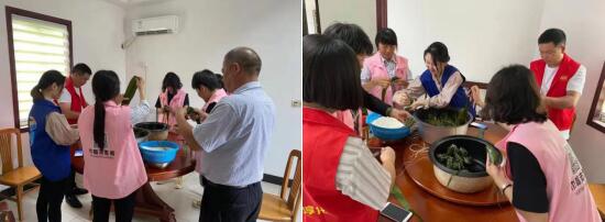 活動現(xiàn)場,一片其樂融融,黨員干部熱心地為志愿者提供幫助,有的志愿者在準備包粽子的食材,有的志愿者在熟練地包著粽子,有經(jīng)驗的在認真地教初學(xué)者有關(guān)包粽子的技巧,志愿者們圍坐在一起,話著家常,好不熱鬧。包完粽子后,社區(qū)干部帶領(lǐng)黨員、網(wǎng)格員及志愿者為社區(qū)80歲以上老人送去端午粽,給他們帶去組織的關(guān)懷與慰問。