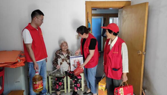當(dāng)天中午,新時(shí)代文明實(shí)踐站的工作人員和志愿者拎著一袋袋剛剛煮好的粽子、牛奶、油、咸鴨蛋、糕點(diǎn)等慰問(wèn)品,為10多戶居民送去端午節(jié)暖心的祝福,其中包括退休人員、老黨員、殘疾老人等。工作人員又專程趕到棲霞區(qū)頤養(yǎng)中心為殘疾人周佐連送去慰問(wèn)品,周佐連感動(dòng)地說(shuō):“我無(wú)兒無(wú)女,社區(qū)待我比親人還親,感謝社區(qū)的關(guān)心。”