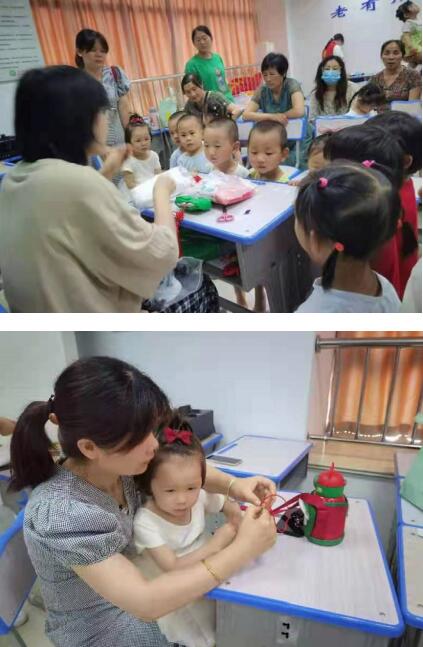 之后,家長(zhǎng)與孩子們開始進(jìn)行繪本主題手工制作,在志愿者的教導(dǎo)下,在提前準(zhǔn)備好的粽子形狀的紙板上,根據(jù)粽子的形狀和顏色,先在紙板上填上米飯的顏色和粽葉的綠色,然后幫粽子添加擬人化的可愛表情,最后將中國(guó)結(jié)加上,現(xiàn)場(chǎng)十分熱鬧,大家制作起來相當(dāng)認(rèn)真,不一會(huì),一個(gè)可愛的繪本主題手工就完工了。