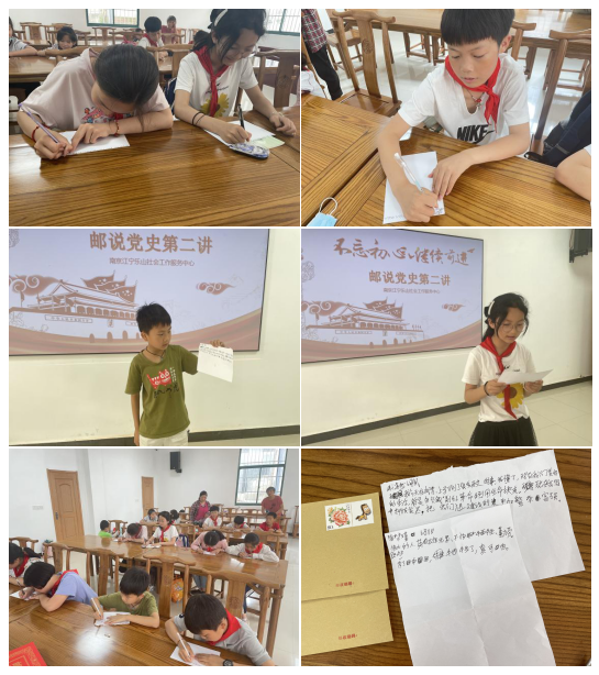 “原來(lái)每一張郵票都有一個(gè)感人故事啊,通過(guò)郵票來(lái)學(xué)習(xí)黨的歷史使我更加懂得我們今天的幸福生活是先烈們用生命換來(lái)的,以后我要更加努力學(xué)習(xí)本領(lǐng),以告慰烈士英靈。”汪浩然同學(xué)說(shuō)。同學(xué)們興高采烈,還把今天的所學(xué)所感寫在了紙上,與大家交流分享后便裝進(jìn)信封,貼上郵票,寄給自己的同學(xué)和親人。