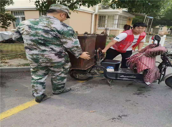 炎熱的夏季已經(jīng)到來,文明城市創(chuàng)建工作進入最艱難也是最重要的階段。南京市棲霞區(qū)馬群街道百水家園社區(qū)民主主動請任務,瞄準最難的工作和網(wǎng)格,積極參與進社區(qū)文明城市創(chuàng)建工作中去。他們統(tǒng)一穿著迷彩服,充分發(fā)揮自己的力量優(yōu)勢,投入到社區(qū)各種苦、臟、累的活兒中,協(xié)助社區(qū)工作人員、小區(qū)物業(yè)、志愿者清理小區(qū)內(nèi)的共享單車、僵尸車等,將被丟棄的大型家具等搬運到指定地點,極大地支援了社區(qū)的工作。