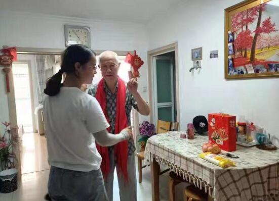 6月21日,南京市棲霞區(qū)堯化街道堯化社區(qū)工作人員來到楓林新寓小區(qū)85歲的戴立彬爺爺家,陪伴老人過了一個溫馨快樂的生日。