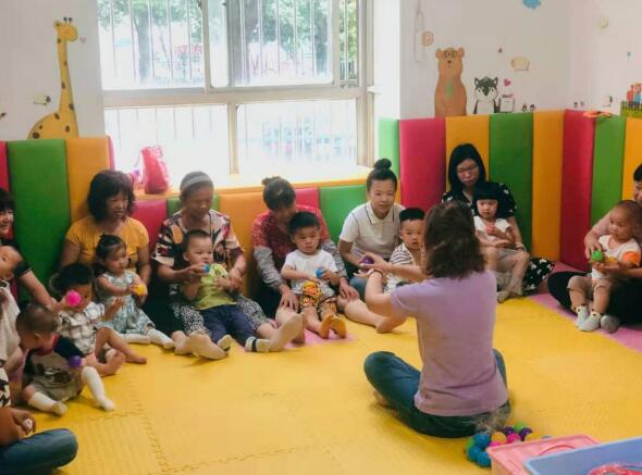 一切漸入佳境,然而當(dāng)小朋友聽見自我介紹的要求時,還是瑟縮著往爸爸媽媽身后躲,對于未知的事情寶寶難免會恐懼。面對手心出汗的小朋友,西瓜老師妙計化解了尷尬,她請家長帶寶寶面向自己圍坐成一個半圓,借身體距離拉近心理距離,